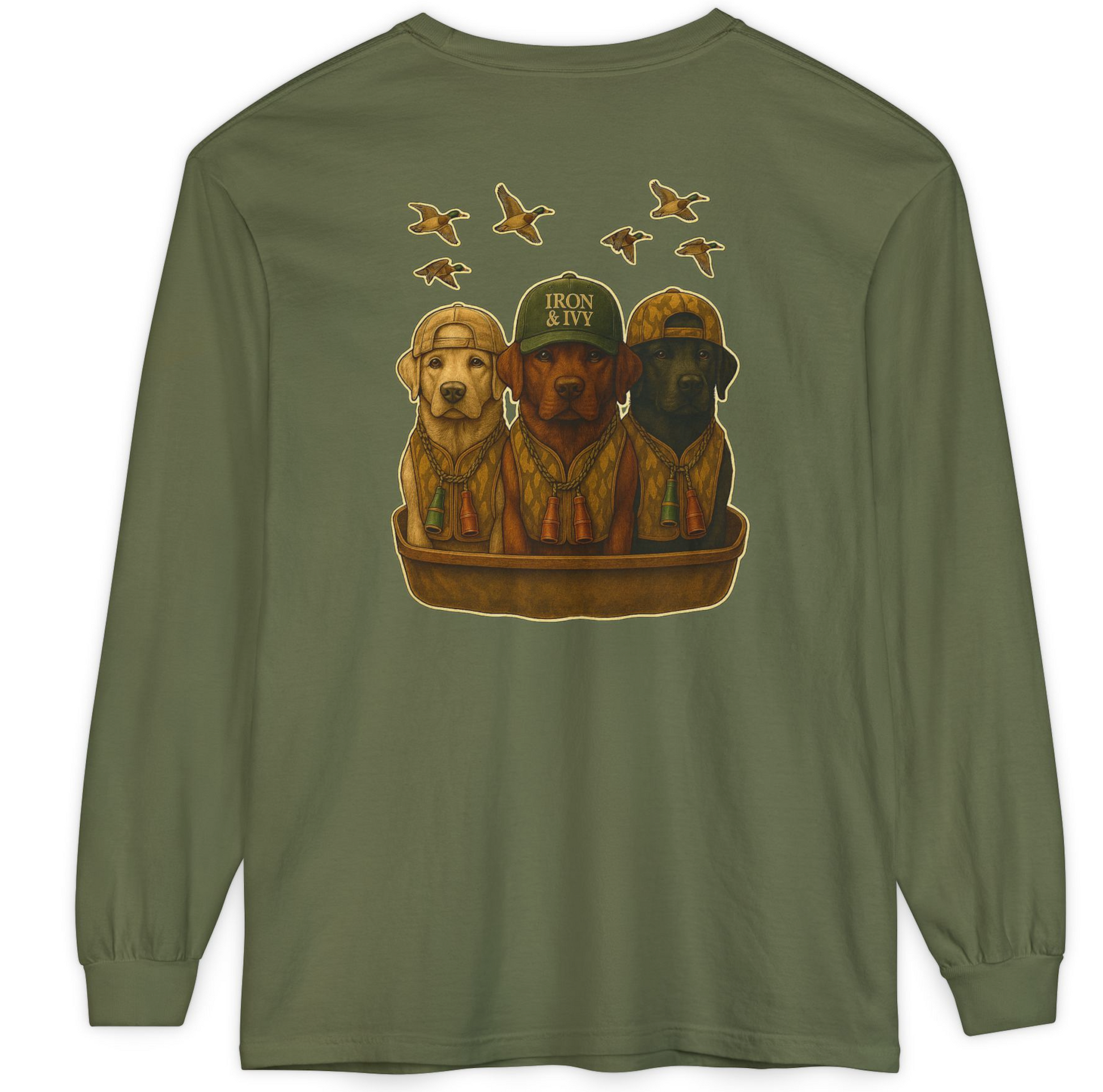 Three loyal retrievers. One muddy boat. Endless sunrise hunts.